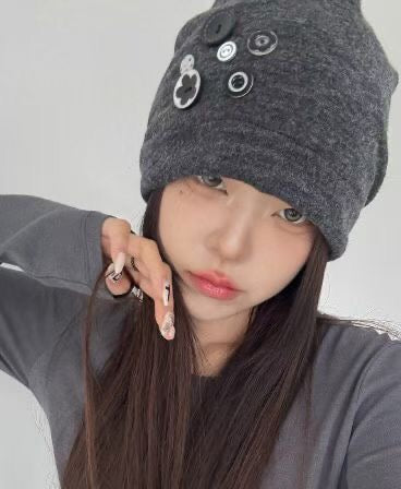 鈕扣雪花堆堆帽 - HA593